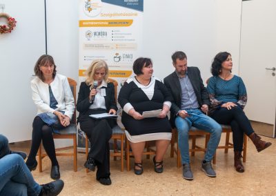 A folytatásban egészségügyi és szociális intézmények szakértői mutatták be gyakorlatukat a pszichiátriai ellátás, demenciával élők nappali intézményi gondozása és az aktív, egészséges idősödés területéről. A napot a Modus Alapítvány eredményeinek és fejlődési irányainak összegzése zárta.